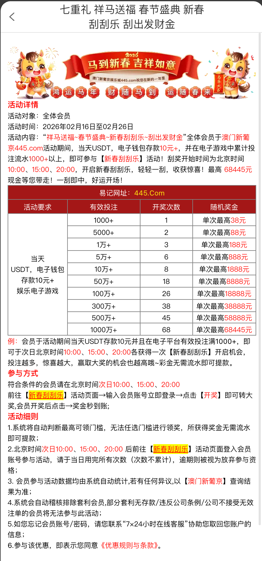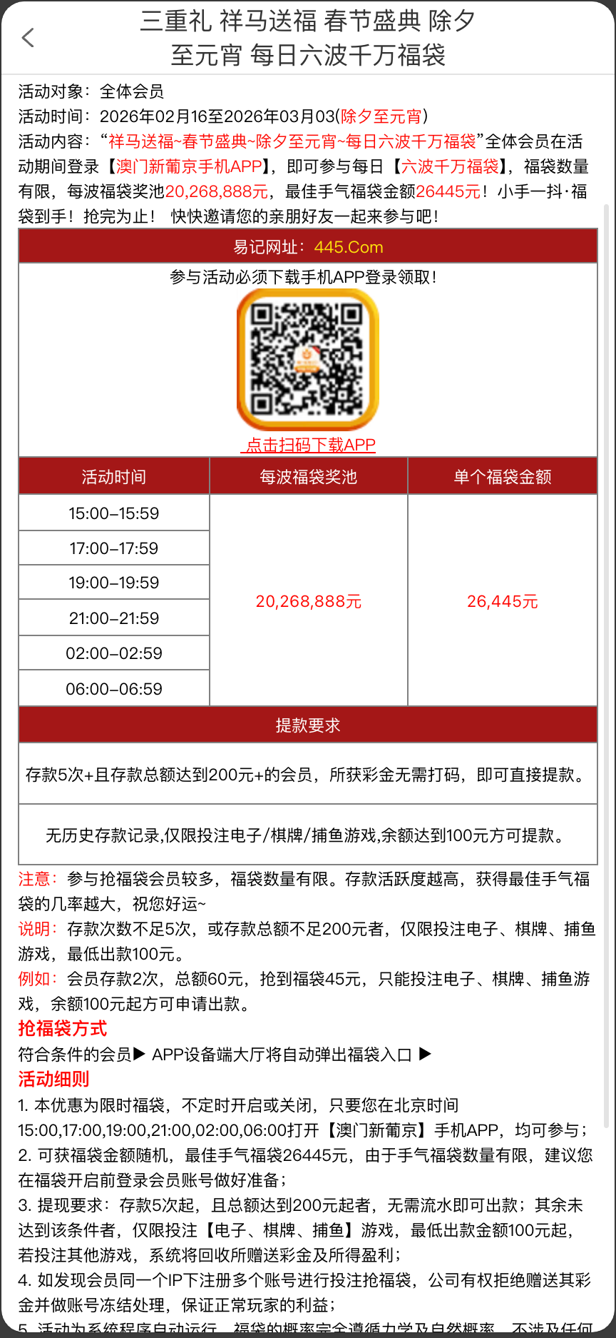 【澳门新葡京】每日三波千万福利红包免费领取,最高可获68445元